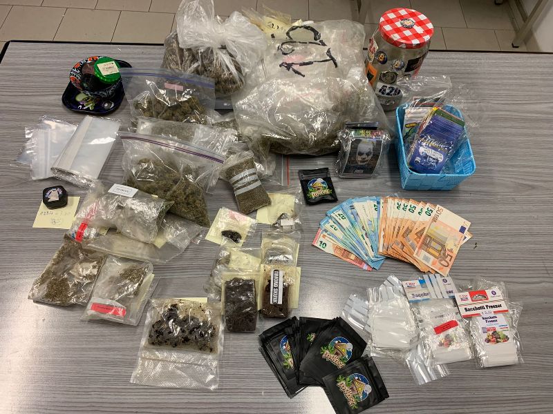 La droga era già suddivisa in queste particolari bustine colorate. Trovate anche molte banconote. Il 20enne è stato arrestato e la droga è stata sequestrata.