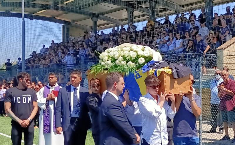 Un campo da calcio regolamentare ha le dimensioni di 105x68 metri, quindi la superficie è di oltre 7mila metri quadrati. Eppure, per quanto ampio può essere stato lo spazio a disposizione considerata anche la tribuna, il campo sportivo Biagioli del Santa Maria Calcio quest'oggi non è riuscito a contenere il dolore e il cordoglio che tutti hanno mostrato durante il funerale di Lorenzo De Luca.