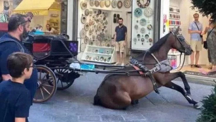 Sta facendo il giro del web una foto che ritrae il momento in cui un cavallo che trainava una carrozza per turisti crolla a terra. È accaduto ieri, 3 luglio, a Firenze, tra via Calzaiuoli e via dei Lamberti. La foto ha fatto il giro sui social, scatendando la polemica per l'uso degli animali durante il forte caldo estivo. Nel post con la foto, ad esempio, si legge "mi vergogno di essere fiorentina".