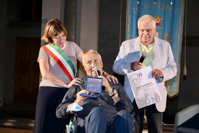 A rompere il ghiaccio, davanti a un pubblico numeroso, è stato Renzo Maltinti, presidente della squadra di ciclismo GS Maltinti Lampadari e organizzatore di corse, apprezzatissimo in tutta la Toscana. Una figura di spicco del mondo dello sport empolese che si è visto consegnare dal presidente regionale del Coni, Simone Cardullo, e dalla sindaca di Empoli, Brenda Barnini, la Stella di bronzo del Coni, per la sua impagabile attività nel ciclismo.