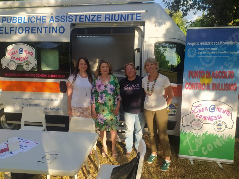 Le tappe di Liber@mente Connessi proseguono. Il prossimo appuntamento con lo sportello itinerante contro il bullismo sarà al ‘110 Hertz Festival’ a Coltano, Pisa, in programma per questo sabato 16 luglio 2022. Martedì 19 luglio tappa al PalAramini con Uisp Empoli Valdelsa: dalle 15.30 le operatrici saranno a disposizione per domande, informazioni e curiosità dei bambini che frequentano i centri estivi Uisp mentre dalle 16.30 incontreranno i genitori. Seguiranno aggiornamenti sulle pagine facebook del Centro Aiuto Donna Lilith e delle Pubbliche Assistenze Riunite, dove sarà possibile conoscere le future ‘fermate’ dello sportello mobile.