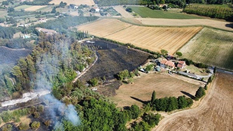 Incendio in corso tra la Borghigiana e Cigoli (zona Paesante), nel comune di San Miniato. Sul posto 2 squadre dei vigili del fuoco, un elicottero, una squadra della Vab e 3 squadre antincendio delle Misericordie di San Miniato. Non è ancora nota l'area di estensione del rogo. Attorno alle 17 l'incendio è stato domato.
