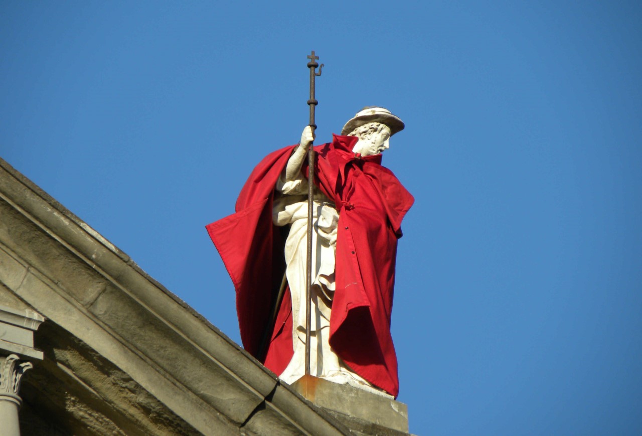 Alle 18.30, il mantello rosso sarà posto sulle spalle della statua di San Jacopo dai Vigili del Fuoco. Il mantello rosso vuole ricordare il martirio di Giacomo, ma rimanda anche alla curiosa leggenda popolare pistoiese che lo vede debitore insolvente tant’è che, si narra, avesse promesso di pagare i debitori quando avesse fatto “molto caldo”. Giunti a luglio si fece trovare con un pesante mantello.