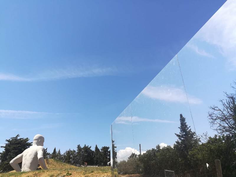 Un cubo di specchi all'ombra del gigante Presenze ricostruito per dare un nuovo “volto” alla cisterna, rimessa in funzione, di Fonte Mazzola.