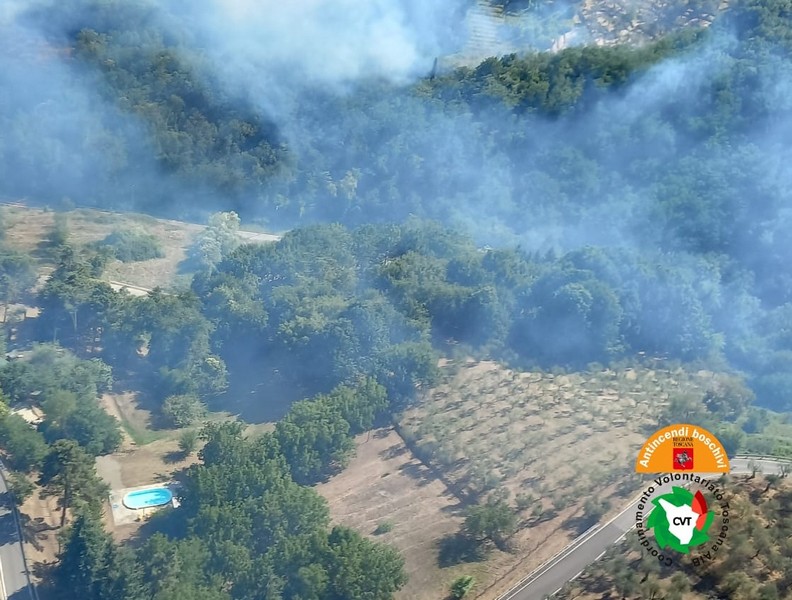 Il vento presente in zona rende difficoltose le azioni di spegnimento e il direttore delle operazioni ha richiesto l’intervento di tre elicotteri e di ulteriori squadre. Per la presenza nella zona interessata dalla fiamme di diverse abitazioni, è stato richiesto il supporto dei vigili del fuoco.