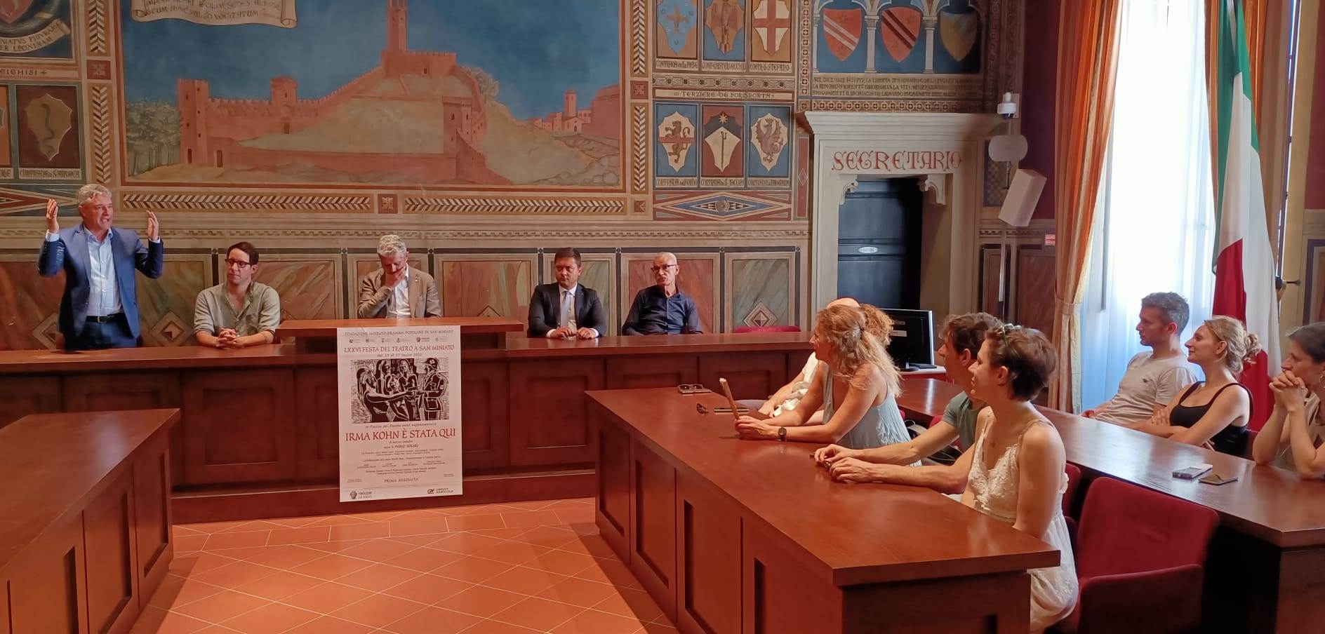 Con l'arrivo della compagnia teatrale reclutata per la messa in scena di 'Irma Kohn è stata qui', può avere inizio la fase clou del Dramma Popolare di San Miniato (qui le info su tutti gli spettacoli in palinsesto). Quest'oggi in municipio sono stati accolti il regista Pablo Solari, gli attori e i tecnici della compagnia che metterà in scena il romanzo di Matteo Corradini.