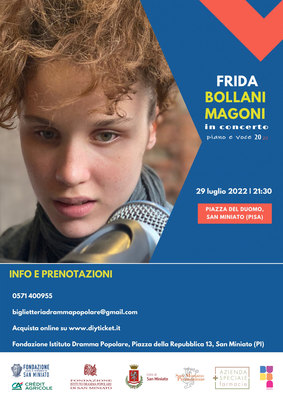 Frida Bollani Magoni in concerto a San Miniato: la giovanissima pianista toscana sarà ospite della città della Rocca in piazza Duomo, sul palcoscenico allestito per il Dramma Popolare, il prossimo venerdì 29 luglio, alle 21.30.