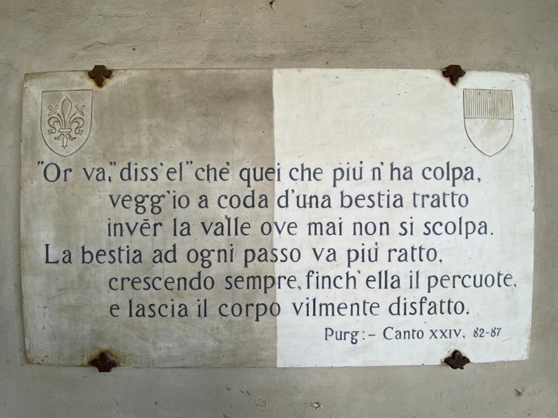 “Le targhe dantesche che stiamo restaurando rappresentando la personalità e la storia della nostra città - ha detto l’assessore ai Lavori pubblici Titta Meucci -. Una testimonianza che non poteva essere lasciata al degrado e all’incuria e che per questo abbiamo voluto riportare all’antico splendore, anche grazie a Costa Crociere che ha reso possibile l’intervento con un finanziamento in regime di art bonus”.