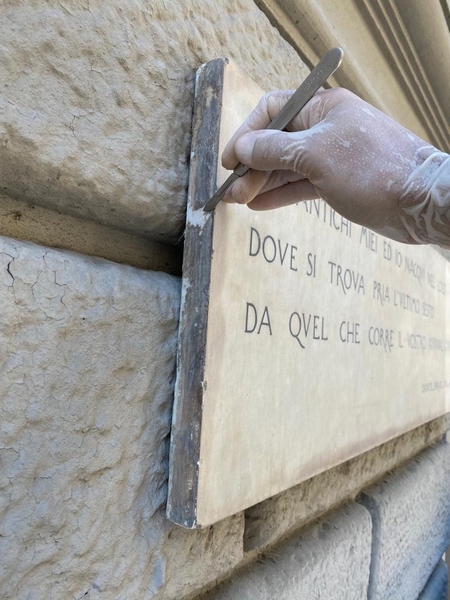 “Le targhe dantesche che stiamo restaurando rappresentando la personalità e la storia della nostra città - ha detto l’assessore ai Lavori pubblici Titta Meucci -. Una testimonianza che non poteva essere lasciata al degrado e all’incuria e che per questo abbiamo voluto riportare all’antico splendore, anche grazie a Costa Crociere che ha reso possibile l’intervento con un finanziamento in regime di art bonus”.