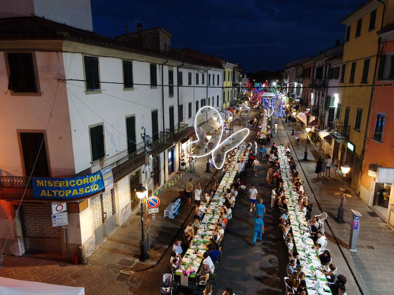 Oltre 760 persone per una serata davvero ricca di emozioni: “A cena sulla Francigena”, il tradizionale evento, che mancava da 3 anni nella cittadina del Tau, organizzato da Misericordia Altopascio insieme a Ccn Altopascio e amministrazione comunale, con il supporto di Farmacia comunale, Fratres e Avis Altopascio, Tocca a noi Altopascio, comitati delle sagre paesane delle frazioni e i tanti sponsor che hanno reso possibile la serata, è stato un grande successo. Sotto un tramonto eccezionale e un cielo pieno di stelle, sono state più di 760 le persone accorse in via Cavour per la serata-evento di solidarietà: tutto il ricavato della cena e della lotteria, infatti, verrà devoluto proprio alla Misericordia per finanziare le numerose attività di servizio e assistenza.