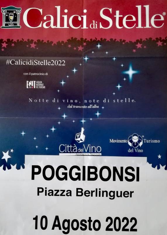 Dopo due anni di assenza ritorna Calici di Stelle a Poggibonsi, evento che, come consueto, si svolge il 10 agosto. Una manifestazione che avrà luogo, diversamente dalle precedenti edizioni, in piazza Berlinguer che nella notte di San Lorenzo ospiterà decine di aziende, locali e non, che porteranno i loro prodotti in degustazione.