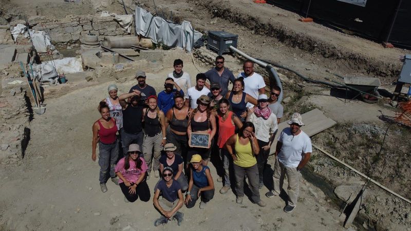 La squadra degli scavi archeologici al santuario etrusco e romano nel Bagno Grande di San Casciano dei Bagni