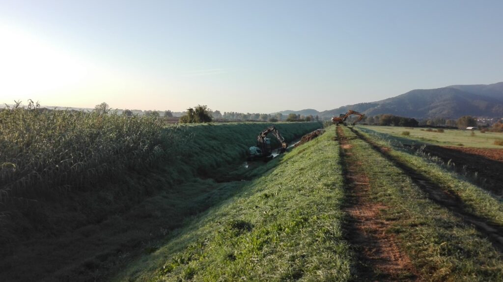 I lavori tra la via Romana e la ferrovia Il Rio Leccio scorre in una zona fortemente antropizzata, con argini di modesto spessore che non possono essere ampliati per la presenza di strade e abitazioni. È quindi necessario provvedere al loro consolidamento in modo da evitare che un’eventuale tracimazione possa provocare una pericolosa rottura. L’intervento riguarda il miglioramento geotecnico delle arginature destre e sinistre del Rio Leccio.