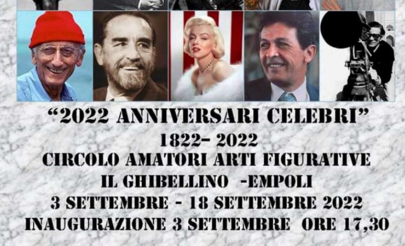 Il 3 settembre a Empoli si terrà l'inaugurazione della mostra “2022 Anniversari celebri” VII Mostra di Arte Contemporanea Itinerante proposta da A.L.I. (Artisti Liberi Indipendenti).