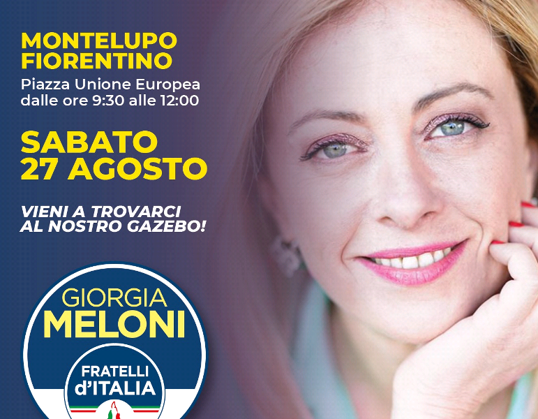 Per questo Fratelli d’Italia sarà presente al mercato settimanale di piazza Unione Europea, dalle 9.30 alle 12 per illustrare il proprio programma e quello della coalizione di centrodestra. Presenti i consiglieri comunali Maddalena Pilastri, Paolo Ingenito, Giuseppe Madia, lo stesso Federico Pavese, portavoce di zona e altri dirigenti del territorio dell’Empolese Valdelsa.