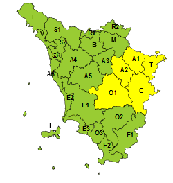 I fenomeni tenderanno a farsi più significativi, in particolare nel settore orientale, nella giornata di domani, sabato 27 agosto, con rovesci e temporali, localmente anche di forte intensità, e con possibilità anche di colpi di vento e grandinate. Per questo, la Sala operativa della Protezione civile regionale ha emesso un codice giallo per temporali forti e rischio idrogeologico e del reticolo idraulico minore, con validità dalle 12 alla mezzanotte di sabato. Le zone interessate sono quelle del Casentino, del Valdarno superiore, della Valdichiana, dell’Alto Ombrone grossetano e della Valtiberina.
