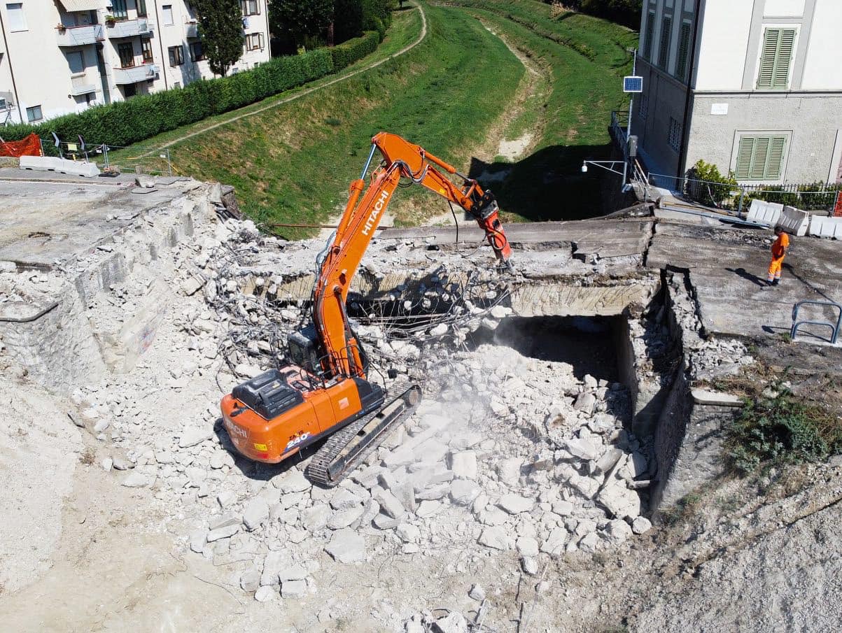 È entrata nel vivo la seconda fase del cantiere per la realizzazione del nuovo ponte sull'Orme, fase che prevede la demolizione e il consolidamento delle spalle di appoggio del nuovo ponte lungo la Statale 67. Venerdì 26 agosto, si è conclusa la demolizione del ponte, adesso è in corso la divisione dei materiali, ovvero dell'acciaio dal cemento, così da procedere con la rimozione dei detriti presenti nel letto del torrente.
