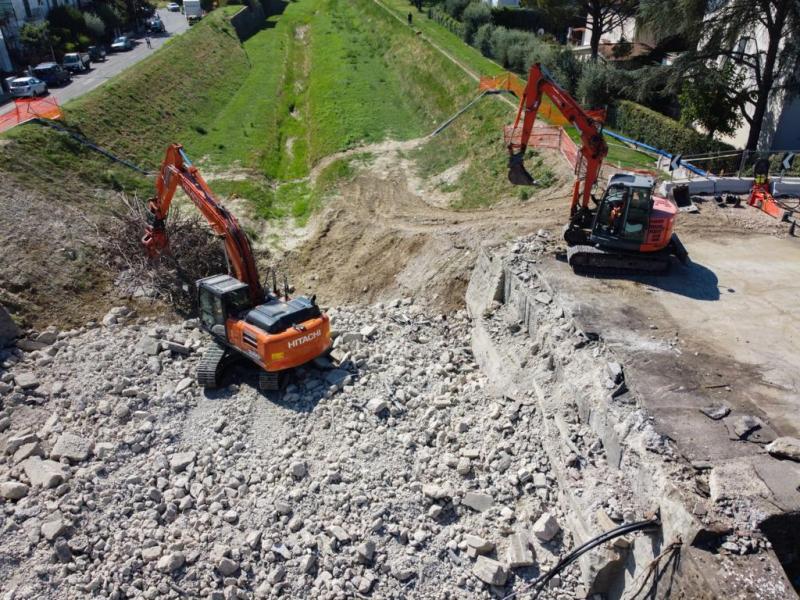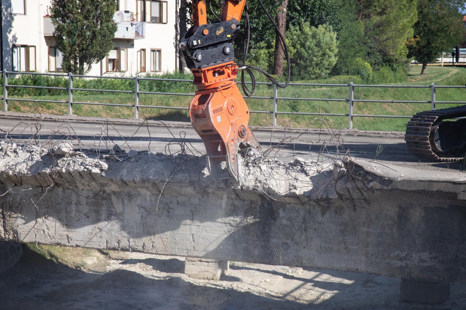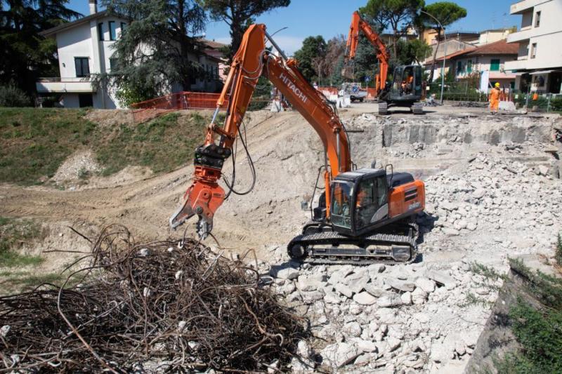 È entrata nel vivo la seconda fase del cantiere per la realizzazione del nuovo ponte sull'Orme, fase che prevede la demolizione e il consolidamento delle spalle di appoggio del nuovo ponte lungo la Statale 67. Venerdì 26 agosto, si è conclusa la demolizione del ponte, adesso è in corso la divisione dei materiali, ovvero dell'acciaio dal cemento, così da procedere con la rimozione dei detriti presenti nel letto del torrente.