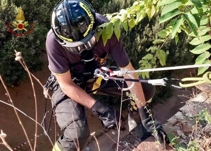 Intervento per la messa in sicurezza della Fortezza Medicea di Siena dalla quale oggi sono caduti parti di mattoni. Sul posto i vigili del fuoco che calandosi dall'alto, con manovre speleo, hanno messo in sicurezza l'area rimuovendo le porzioni pericolanti.