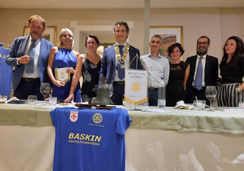 • “BASKIN” lo sport di squadra giocato da disabili e normodotati insieme per cui il Rotary Valdelsa ne sosterrà la formazione della Nuova squadra in collaborazione con l’associazione polisportiva il Giglio di Castelfiorentino. Nell serata è stata inoltre donata una nuova T-shirt dal Rotary Valdelsa che vestirà i giocatori.