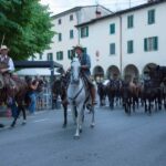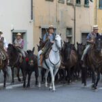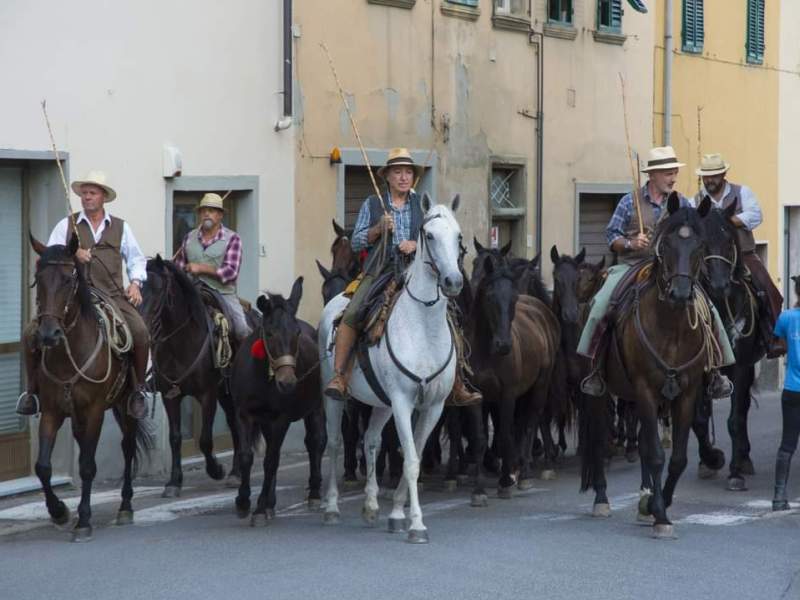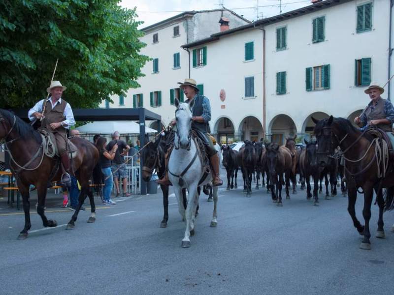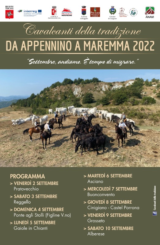 Sono i moderni transumanti: professionisti, impiegati, imprenditori che lasciano fabbriche e uffici per vivere emozioni antiche ed esperienze dimenticate, mossi dalla passione per il mondo equestre e motivati dalla volontà di salvaguardare una delle tradizioni più tipiche della regione: la migrazione del bestiame prima dell'inverno verso aree dal clima più mite e dai pascoli più verdi. Diversa l’epoca, ma molto simili le modalità del trasferimento. Una decina di cavalieri, con una mula munita di campanaccio, conducono verso il mare una mandria di puledri selvatici che vivono allo stato brado. Ogni anno, dal 2009, lungo un percorso differente. Questa volta sono partiti da Pratovecchio Stia, che venerdì 2 settembre li ha salutati con una grande festa, per arrivare ad Alberese: 270 chilometri da percorrere per portare a destinazione 13 animali, tra maremmani e tolfetani, poco avvezzi alla presenza dell'uomo.