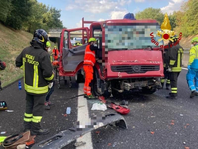 Si è verificato un tamponamento tra un autocarro e un autoarticolato. I vigili del fuoco di Arezzo hanno estratto una persona dalle lamiere dell'autocarro dopo dopo un lavoro di taglio e di dilatazione delle lamiere e lo hanno affidato al personale sanitario.