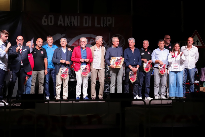 Foto ricordo e spazio finale dedicato alla storia, agli aneddoti, ai ricordi di questi primi 60 anni all’insegna dei Lupi S. Croce: sul palco, in un’atmosfera mista di emozione e divertimento, i fondatori della società (cosiddetti “Lupi Grigi”), vale a dire Ugo e Giovanni Vivaldi, Paolo Giannoni, Luciano Benvenuti, Sergio Gronchi (ex presidente per un trentennio), Marco Gozzini, Massimo Giani, e un altro ex presidente, Renzo Rovini.