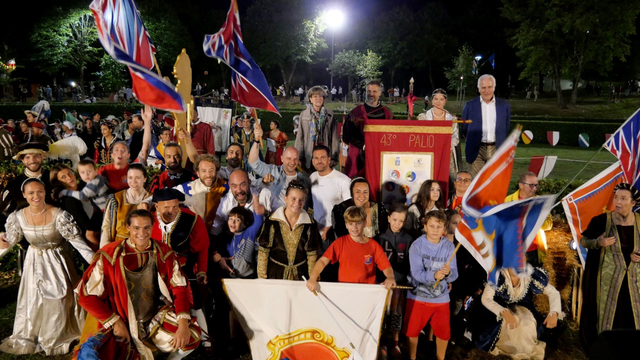 È la contrada della Torre ad aggiudicarsi il Palio della ripartenza. Nella giornata di ieri migliaia le persone accorse per salutare il ritorno in presenza della storica manifestazione dopo due anni di stop. Nel pomeriggio, nella conca dei giardini, nel cuore del capoluogo, le tradizionali gare degli atleti di tutte le età nella corsa con l'uovo, con i sacchi e nel tiro alla fune, e lungo la via Roma le corse col barroccio. In serata il corteo storico rinascimentale lungo le vie del paese e a seguire la Giostra della Stella, momento clou della competizione, nell’anello del giardino dei Ponti.