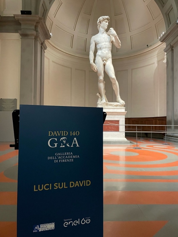 È stata inaugurata ieri sera (lunedì 12 settembre), nella Tribuna della Galleria dell’Accademia di Firenze, la nuova illuminazione del David di Michelangelo. Con "LUCI SUL DAVID" si conclude il progetto, promosso da Enel e realizzato ex-novo da Enel X, per dotare tutte le opere del museo fiorentino di un’innovativa illuminazione artistica, con un’attenzione particolare al risparmio e all’efficienza energetica, attraverso l’utilizzo di tecnologie di ultima generazione a Led.