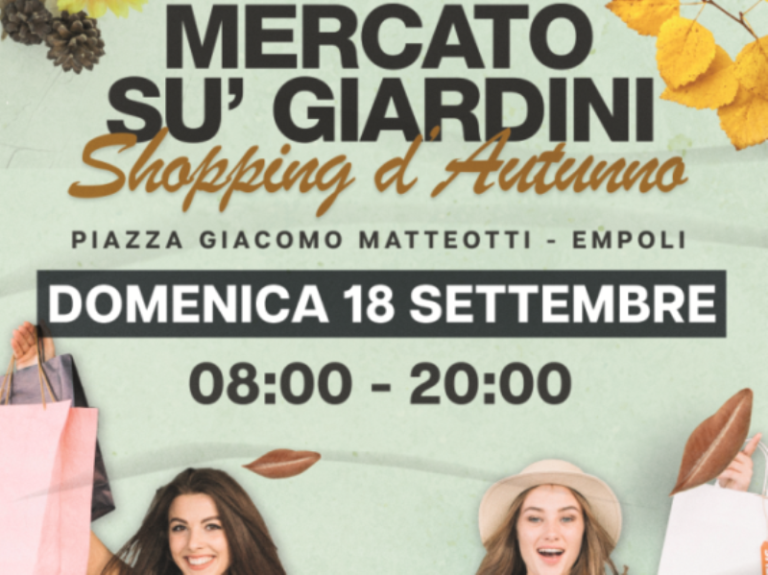 Il Mercato su' Giardini cala il tris, questa volta in versione autunnale. Dopo l’ottima riuscita delle edizioni primaverile ed estiva piazza Matteotti torna ad ospitare gli ambulanti. Appuntamento domenica 18 settembre dalle 8:00 alle 20:00. Dalla mattina alla sera protagonista lo shopping all'aria aperta, con le novità della stagione da non farsi scappare.