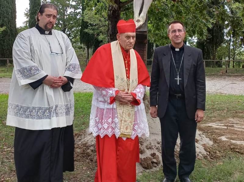 Durante l’omelia il presule ha salutato il porporato: “Sempre una grande grazia incontrare il nostro amato cardinale Ernest Simoni, pregare assieme, accogliere la sua benedizione, raccogliere la sua testimonianza di vita davvero spesa per il Vangelo e oggi con grande generosità e dedizione nel portare l’annuncio del Vangelo in tanti luoghi, come ora qui in mezzi a noi. Grazie Eminenza del suo essere con noi, della sua parola e della sua testimonianza. Un grande grazie anche a don Cristian che mi ha invitato qui a San Donato a Livizzano, gli ho detto "vengo" ma gli ho promesso che verrò ancora volentieri. Devo dire che quando fissammo la data non sapevo ancora nulla del mio nuovo incarico ad Arezzo e oggi San Donato lo troviamo patrono di Arezzo e patrono di questa parrocchia. Ci sono dei segni della Provvidenza che sempre ci guida. Colgo l’occasione per chiedervi la preghiera sia per mio cammino con la Diocesi San Miniato ancora e il mio cammino con nuova diocesi di Arezzo-Cortona-San Sepolcro affidandoci a San Donato e a Maria che oggi preghiamo e veneriamo come Beata Vergine Maria Addolorata sotto la Croce. Bello quest’oggi aver sostato sotto la nuova bellissima croce che abbiamo accolto e benedetta, donata dall’artista Dragani con il quale tutti noi ci complimentiamo, opera che avevo già avuto modo di vedere a San Miniato e che oggi è bello vedere collocata in questo luogo. Stare sotto la Santa Croce vuol dire essere in luogo di grazia, in un luogo di vita, stare sotto la Croce non vuol dire essere davanti a un segno di morte, ma è essere nell’orizzonte, nella sorgente nella grazia che è vita”.