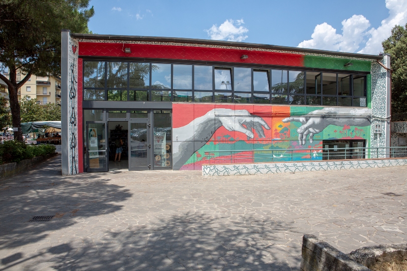 Sulle mura i coloratissimi murales di Exit Enter con i suoi celebri “omini” che si arrampicano alle pareti e ancora la street art di Jamesboy, Ache77, Millo. All’interno un lavoro brulicante che collega stamperia sociale, ciclofficina, corsi di italiano, laboratori. Dal dicembre 2019 a Scandicci uno spazio recuperato è diventato fucina di idee e inclusione.