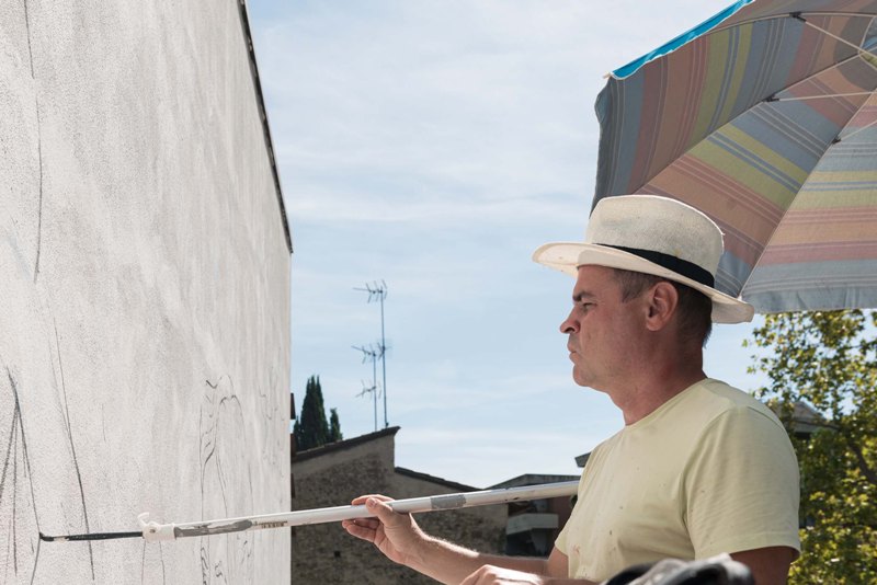 Il work in progress, iniziato venerdì 2 settembre, si è concluso a domenica 18 e ha visto l’artista cimentarsi con il tema della cosmologia e del progresso scientifico all’interno del contesto urbano fiorentino. Le pareti oggetto di destinazione dell’intervento sono parte dell’edificio che ospita la Scuola Secondaria di primo grado Dino Compagni in via Giuseppe Sirtori 58 (Campo di Marte), Quartiere 2 e si estendono su una superficie di oltre 160mq.