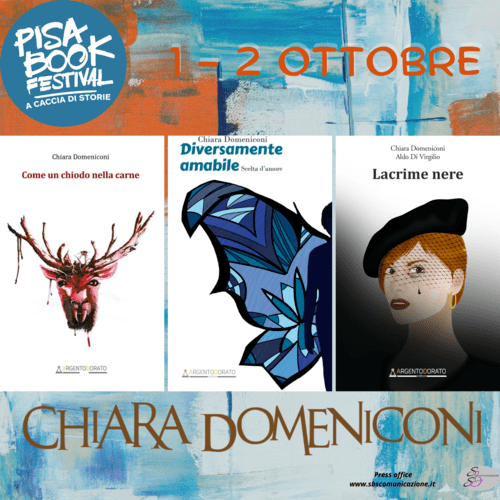 Come un chiodo nella carne, il volume che, il 8 febbraio 2023, porterà Chiara nella vetrina di Casa Sanremo Writer. Selezionata direttamente dalla redazione è stata contattata ad inizio estate. Il secondo testo è Diversamente amabile: ancora una storia vera disegnata dalla vita intensa della scrittrice, si racconta di crescita personale, paura e battaglie per la propria libertà. Ha visto la luce da poche settimane l’ultimo della Domeniconi, Lacrime nere, a quattro mani con Aldo Di Virgilio. Chiara Domeniconi vi aspetta il 1 e 2 ottobre allo stand