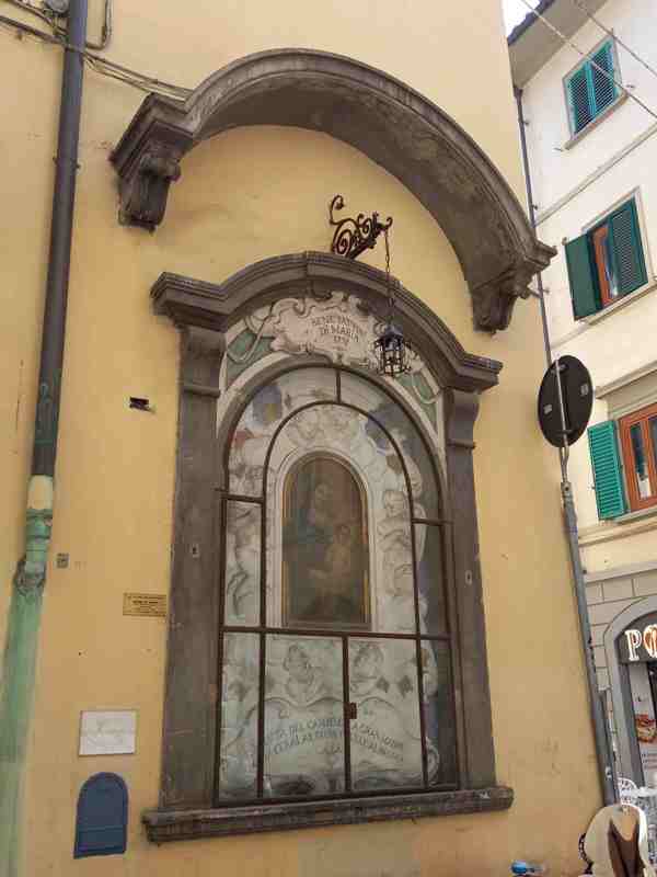 Nell’area di San Lorenzo potrà essere ammirata una Sacra Famiglia con San Giovannino e San Rocco, probabile pittura votiva legata a un’epidemia di peste e, addentrandosi in via Panicale, due Madonne col Bambino sul muro che delimitava il perimetro dell'antico convento di San Barnaba. All’incrocio con via Chiara, dove nel 1500 nacque Benvenuto Cellini, si trova uno splendido esempio di maiolica toscana, mentre all’angolo tra via Taddea e via de’Ginori il Cristo in croce di Giovanni Antonio Sogliani, per arrivare poi in via Nazionale con lo splendido Tabernacolo delle Fonticine di Giovanni della Robbia, figlio di Andrea.