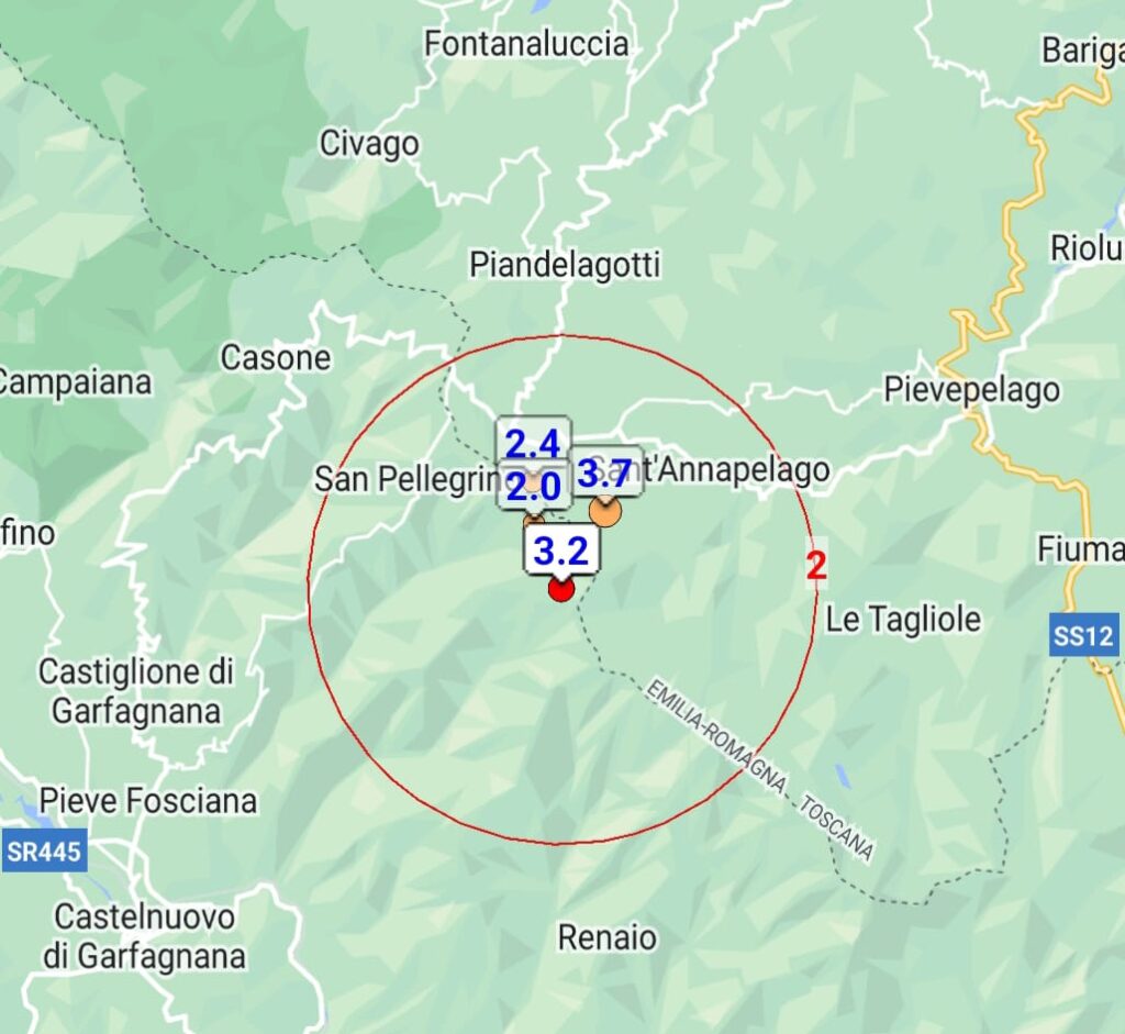 La scossa, alle 00:12, segue le due registrate ieri sempre in provincia di Lucca, a 8 km da Fosciandora. La prima con magnitudo 3.2, alle 17:49, a una profondità di 13 chilometri e la seconda, di magnitudo 2.0, un minuto più tardi, a una profondità di 14 km.