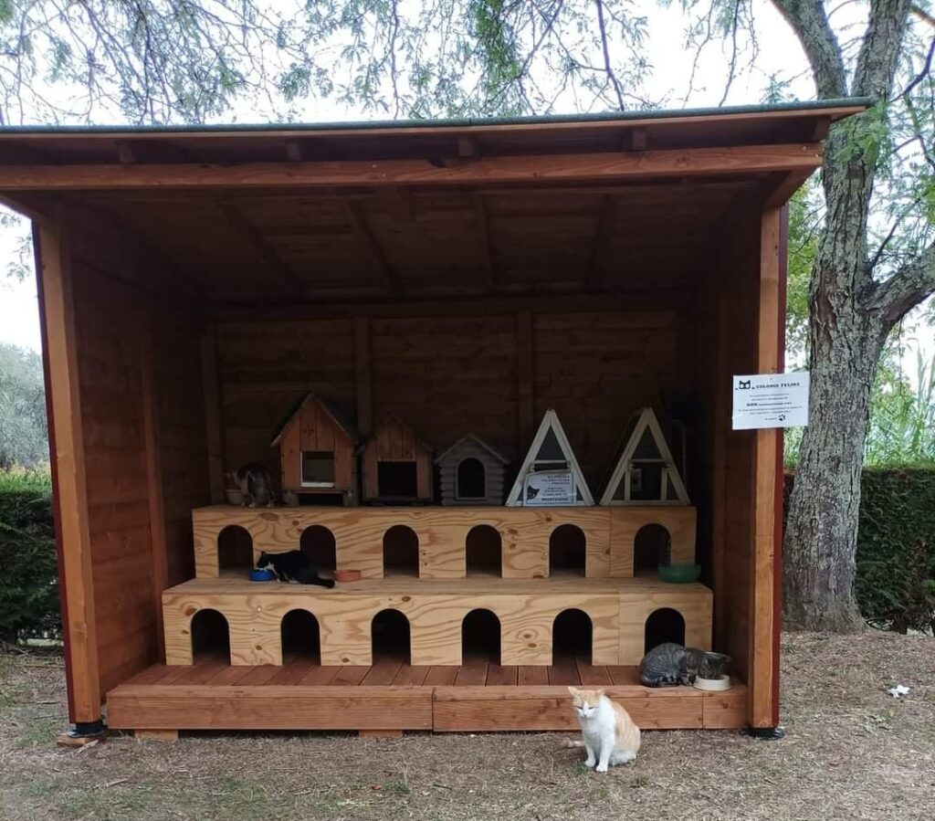 Si tratta di una bella costruzione in legno, realizzata dall'Amministrazione Comunale, che può dare un riparo, soprattutto in caso di maltempo, ai tanti mici della colonia ed è anche utilizzata per farli mangiare.