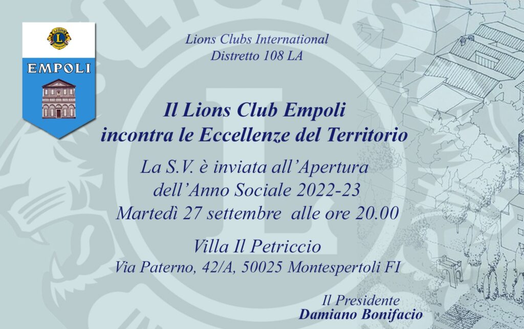 Apre l'anno associativo del Lions Club Empoli, presieduto da Damiano Bonifacio, questa sera alla Villa Il Petriccio di Montespertoli. La serata si chiamerà Eccellenze 2022 perché saranno ospiti le migliori aziende rappresentative del territorio di Empoli.
