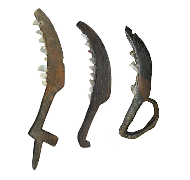 L’analisi ha riguardato tre falcetti eccezionalmente conservati e completi di denti in selce e di mastice utilizzato per fissare le lame. Dall’esame è risultato che i manici erano fatti in legno di quercia e di una pianta della famiglia Maloideae (probabilmente un albero da frutto), mentre per il mastice è stata usata resina di pino mescolata con polvere di carbone. Lo studio delle usure presenti sui denti in selce ha poi confermato che gli strumenti furono principalmente usati per tagliare grano domestico, probabilmente raso suolo, per poter raccogliere l’interezza della paglia.
