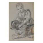 Si tratta di un foglio legato all’attività della bottega di Paolo Veronese, del quale Carletto Caliari è il figlio minore. È databile a dopo il 1588 quando, alla morte del padre, Carletto assunse un ruolo di maggior importanza nella gestione dell’impresa familiare, dopo aver lavorato per alcuni anni nella bottega dei Bassano. Il disegno raffigura una scena di genere, studiando un particolare di una composizione di maggiori dimensioni: probabilmente quello delle bambine che giocano con il cane alla base della Cena in Emmaus della scuola di Paolo Veronese, al Louvre.