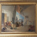 Atelier con il pittore in atto di dipingere il Combattimento di Sommacampagna