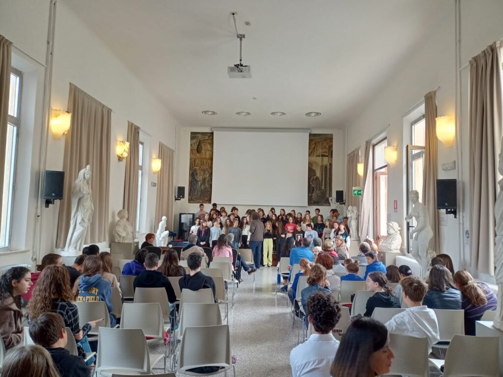 Gli studenti della sezione Accoglienza turistica dell’ITCG ‘Niccolini’ hanno accompagnato il pubblico nell’aula magna del liceo per assistere alla performance dell’orchestra dell'IC Griselli Montescudaio che si è esibita con disinvoltura e professionalità nell’esecuzione dell’inno d’Europa, la Nona sinfonia di Beethoven e l’inno d’Italia il Canto degli Italiani di Goffredo Mameli.