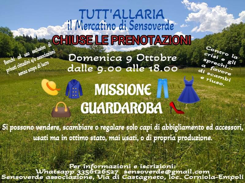 Domenica 9 ottobre in via di Castagneto a Corniola (Empoli) arriva il Mercatino dell'associazione Sensoverde, 'Tuttallaria'. Appuntamento dalle 9 alle 18.