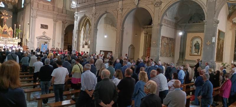 L'applauso parte dopo le pare del figlio Roberto all'annuncio che prenderà le redini dell'associazione sportiva. "Non mi sostituirò a te - racconta dall'altare -, eri un faro e una colonna portante. Ma farò di meglio e ce la metterò tutta per portare avanti questa cosa".
