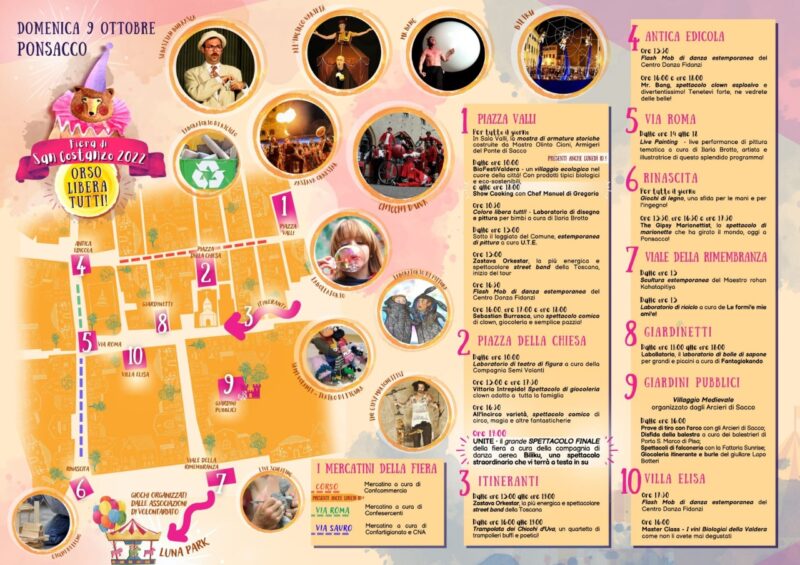 Lunedì 10, in occasione della festa del Patrono di Ponsacco, il centro storico continuerà ad ospitare l'area expo, e per i più piccoli alle ore 16:00 laboratorio di bolle!