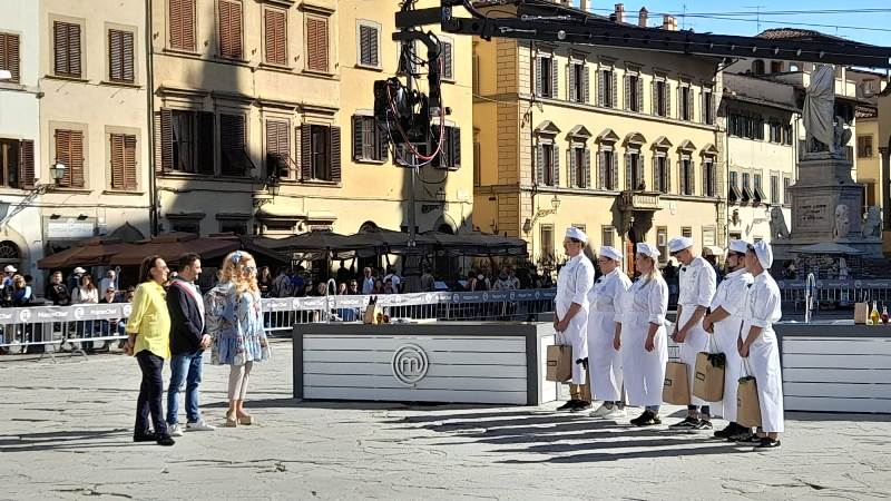 Ad accogliere i concorrenti in Piazza Santa Croce, i presentatori Magda Gessler e Michel Moran insieme al consigliere comunale Mirco Rufilli per il saluto della città di Firenze.