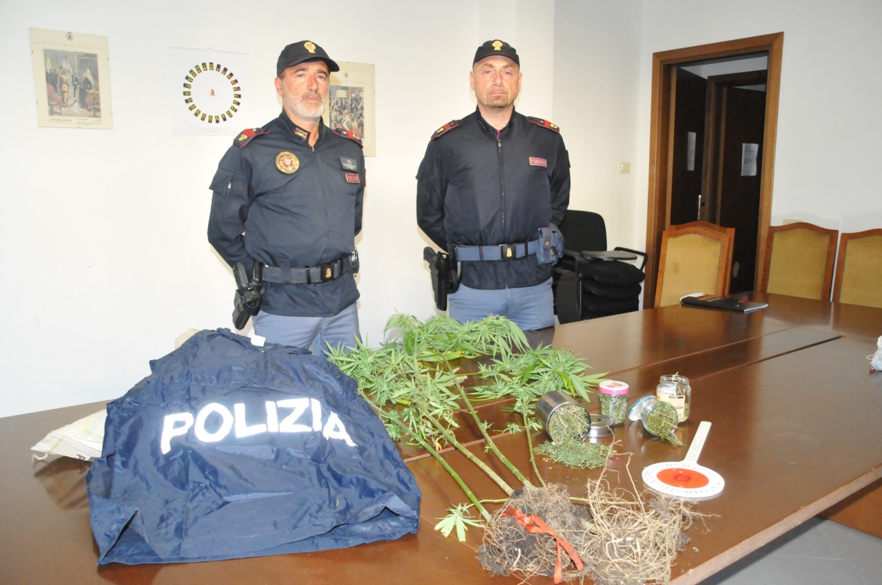 Con notevole sforzo è stata fatta salire sull’auto di servizio per essere accompagnata al Commissariato, ma durante il tragitto ha preso a calci anche il mezzo, provocando numerosi danni. In Ufficio ha continuato a manifestare comportamenti violenti, sia verso gli agenti che verso sé stessa, con azioni autolesionistiche. A seguito degli accertamenti svolti, la donna è stata prima sottoposta a cure mediche e poi arrestata per resistenza, violenza, minaccia e lesioni a Pubblico Ufficiale, e danneggiamento aggravato di beni appartenenti allo Stato. La stessa è stata anche denunciata per guida sotto effetto di sostanze alcooliche e segnalata al Prefetto per detenzione di sostanze stupefacenti ad uso personale. La sessantenne è stata, infatti, trovata in possesso di hashish, sia all’interno della propria borsa che presso la sua abitazione, dove gli agenti hanno scoperto una piccola coltivazione di piante di marijuana e altra sostanza stupefacente, che sono state sequestrate.