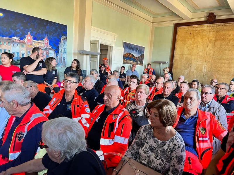 Sabato pomeriggio la sala consiliare era gremita di volontari, di tutte le età, e tanti venuti vestiti di arancione, l'attuale divisa che contraddistingue le pubbliche assistenze. Un'emozionante video, creato con le foto dei tanti volontari del passato e del presente passati dall'associazione, ha aperto il pomeriggio proprio a testimonianza che la P.A. Croce d'Oro esiste solo grazie a tante persone che l'hanno fortemente voluta e che la continuano a portare avanti.