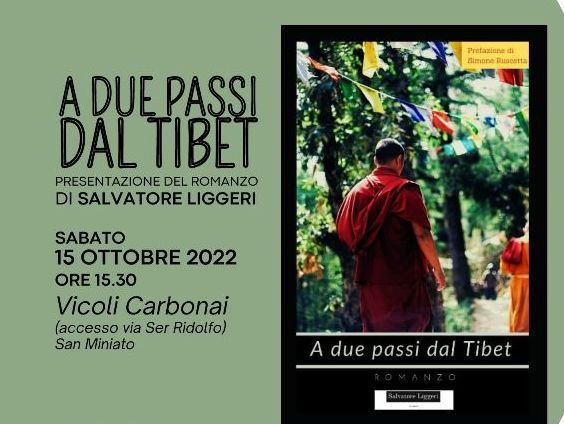 Sabato 15 ottobre, alle ore 15.30, nel Vicolo Carbonaio (accesso da via Ser Ridolfo) sarà presentato l’ultimo romanzo di Salvatore Liggeri "A due passi dal Tibet", che ha voluto raccontare la sua esperienza di vita condivisa con la fidanzata Sara e con altri ragazzi conosciuti nel monastero tibetano di Pomaia all’Istituto Lama Tzong Khapa.
