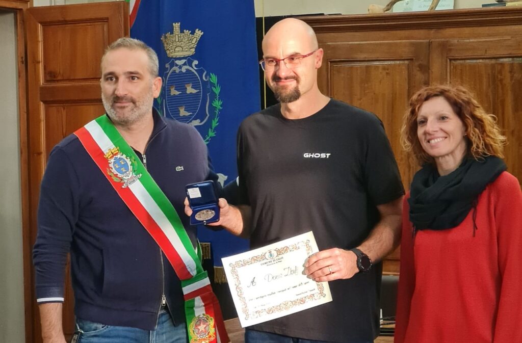 Il sindaco Massimiliano Ghimenti e la vicesindaca con delega allo sport Valentina Ricotta hanno ricevuto in Municipio Denis Zbulj, calcesano di 47 anni, consegnandoli una pergamena e la medaglia ufficiale del Comune di Calci per i suoi meriti sportivi nel tiro dinamico e nel tiro rapido sportivo. Uno sport che iniziò a praticare da bambino e che negli ultimi anni ha ripreso, raggiungendo importanti traguardi: